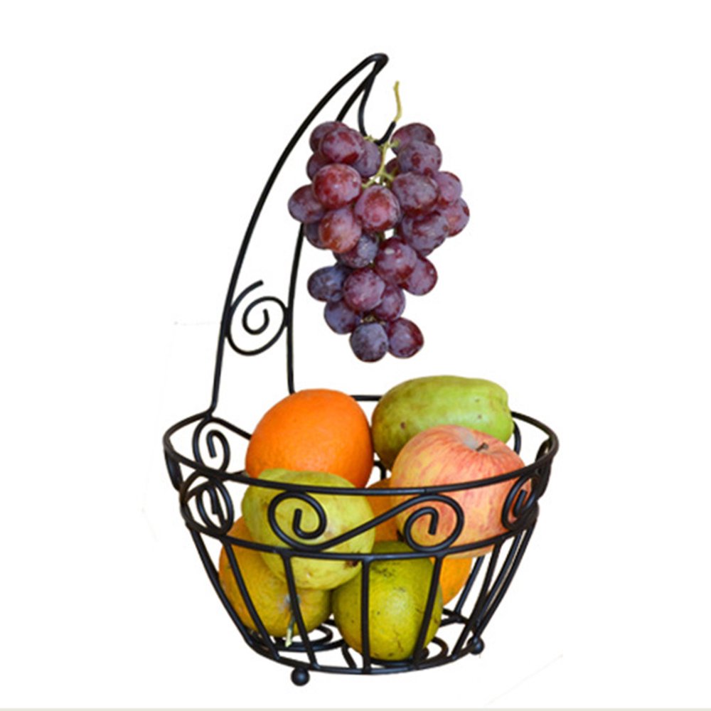 Chrome wire fruit bowl with banana hanger tree hook storage holder basket stand. Buruis fruit basket bowl with banana hanger, modern bird design fruit container, creative tabletop fruit basket for kitchen countertop dining room, decorative display stand (black). This one is a multipurpose fruit bowl with banana hanger. Open design allows fruit to ripen naturally. Fruit basket bowl vegetable wire hanger storage kitchen holder with banana hook.